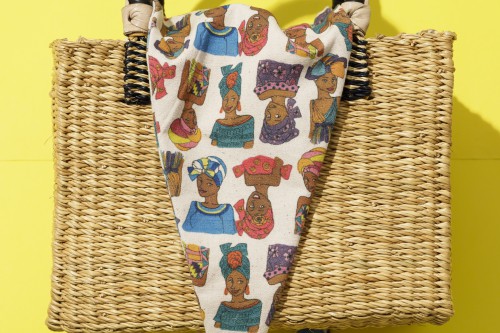 今回『Artist Lara』が描いてくれたのは、彼女が直接ガーナに赴き現地で過ごすことによって彼女自身がインスピレーションを受けたもの。それは“毎日を笑って逞しく生きる、エネルギッシュな人々”でした。学校で勉強をする喜びを見つけた子供たち、ガーナの民族衣装を身にまとったファッショナブルな女性たちを描いたカゴバッグ、サコッシュ、iPhoneケースを展開します。