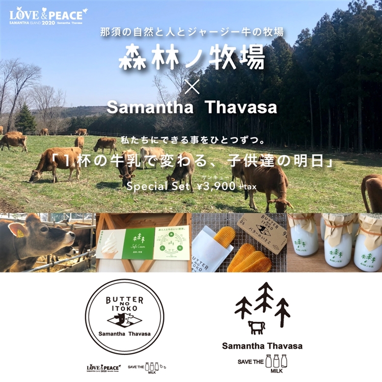 2020.05.08 【1杯の牛乳で変わる、子供達の明日】 3か月待ちで話題のスイーツと牛乳、 そしてSamantha Thavasaのコラボで酪農×サステナブルを実現! 新型コロナウイルスの影響を受け、那須の実店舗の販売分を サマンサ”応援”スペシャルセットで発売スタート! 詳しくは [ こちらをCHECK ]