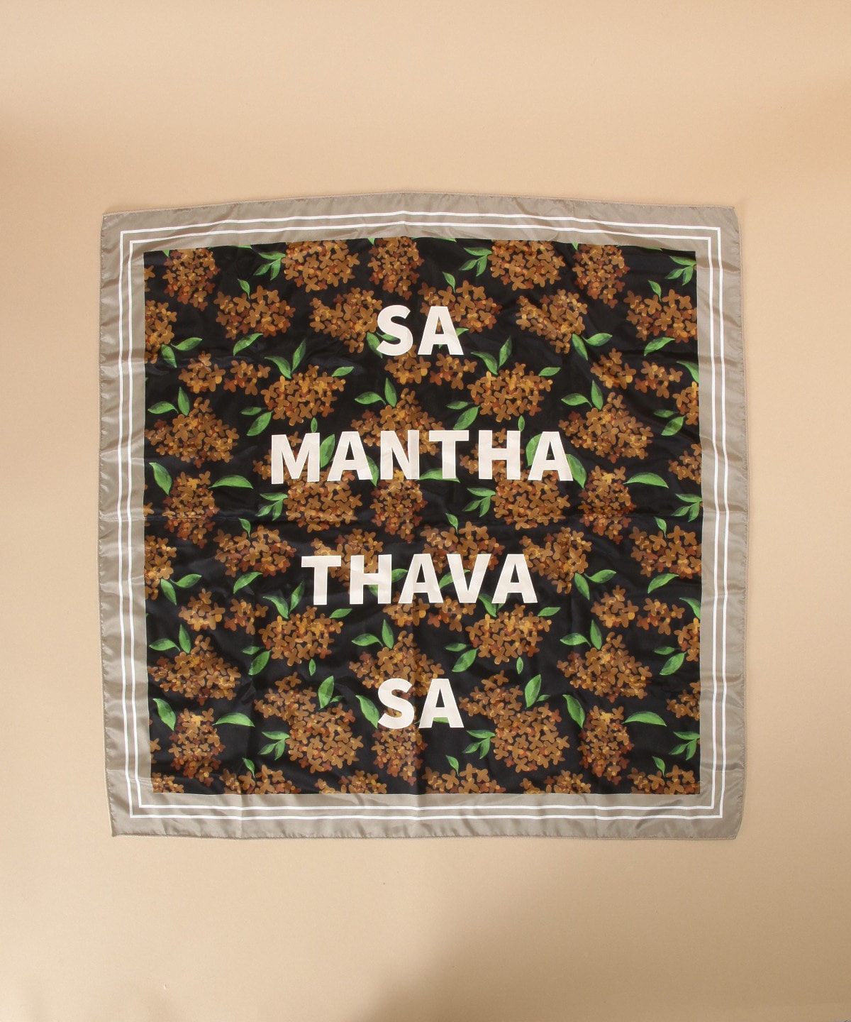 金木犀をイメージしたオリジナルフラワー柄デザインのスカーフ。