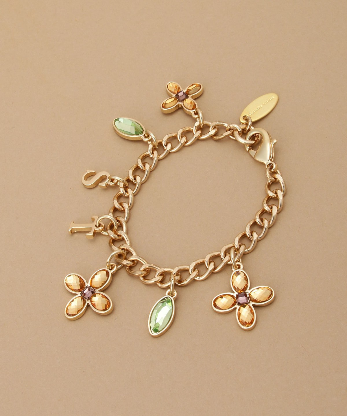 STのロゴと金木犀をイメージしたビジューが華やかなバッグチャームです。