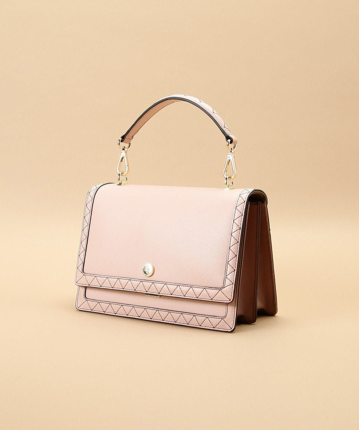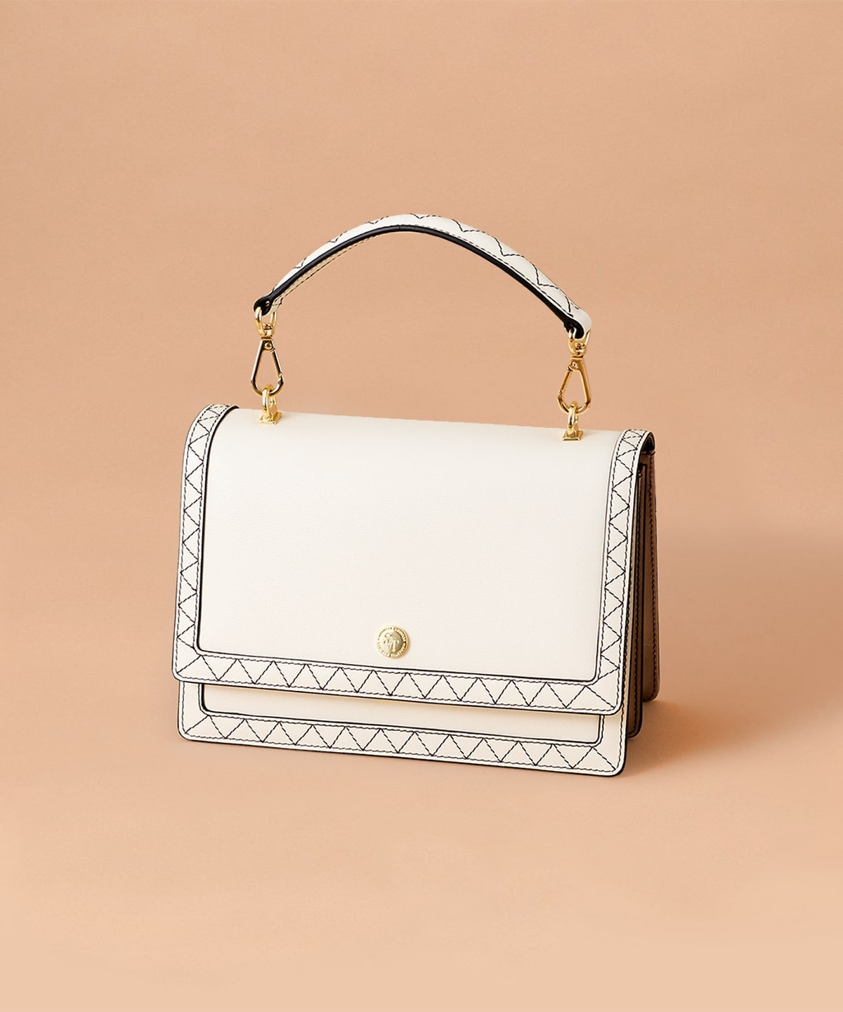 ♡バッグのハンドル部分とかぶせにデザインしたステッチがポイント。