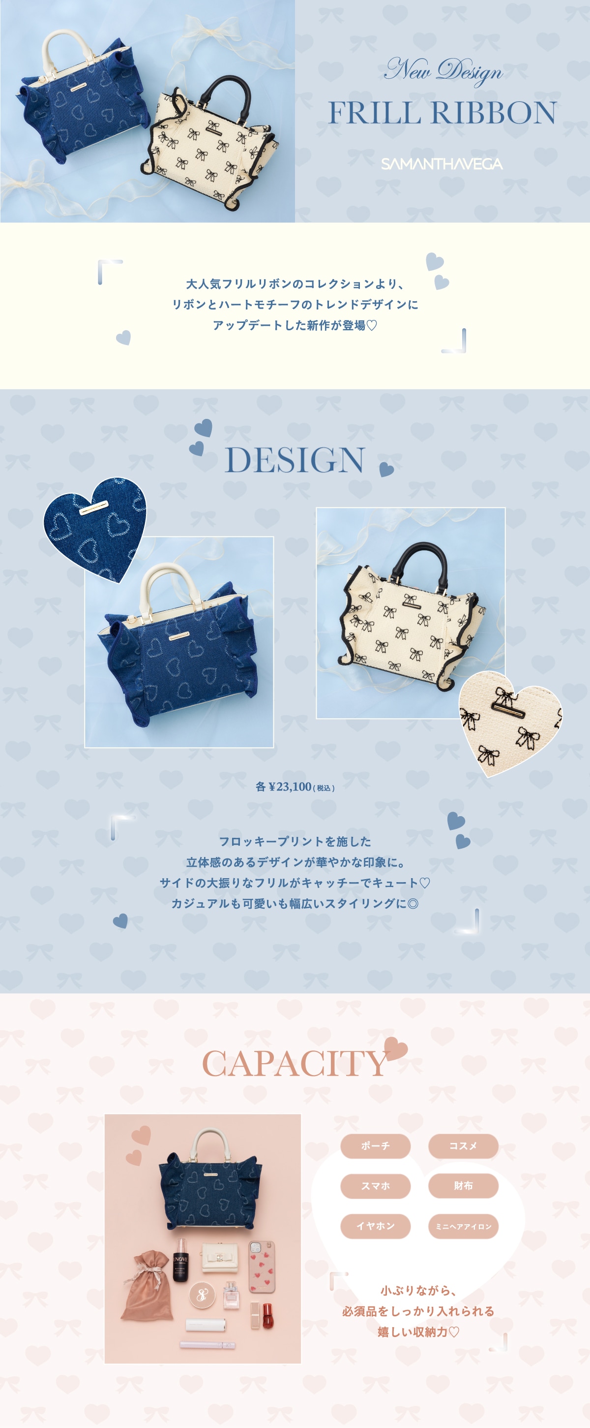 【オンラインショップ&一部店舗限定】ハートデニムフリルハンドバッグ