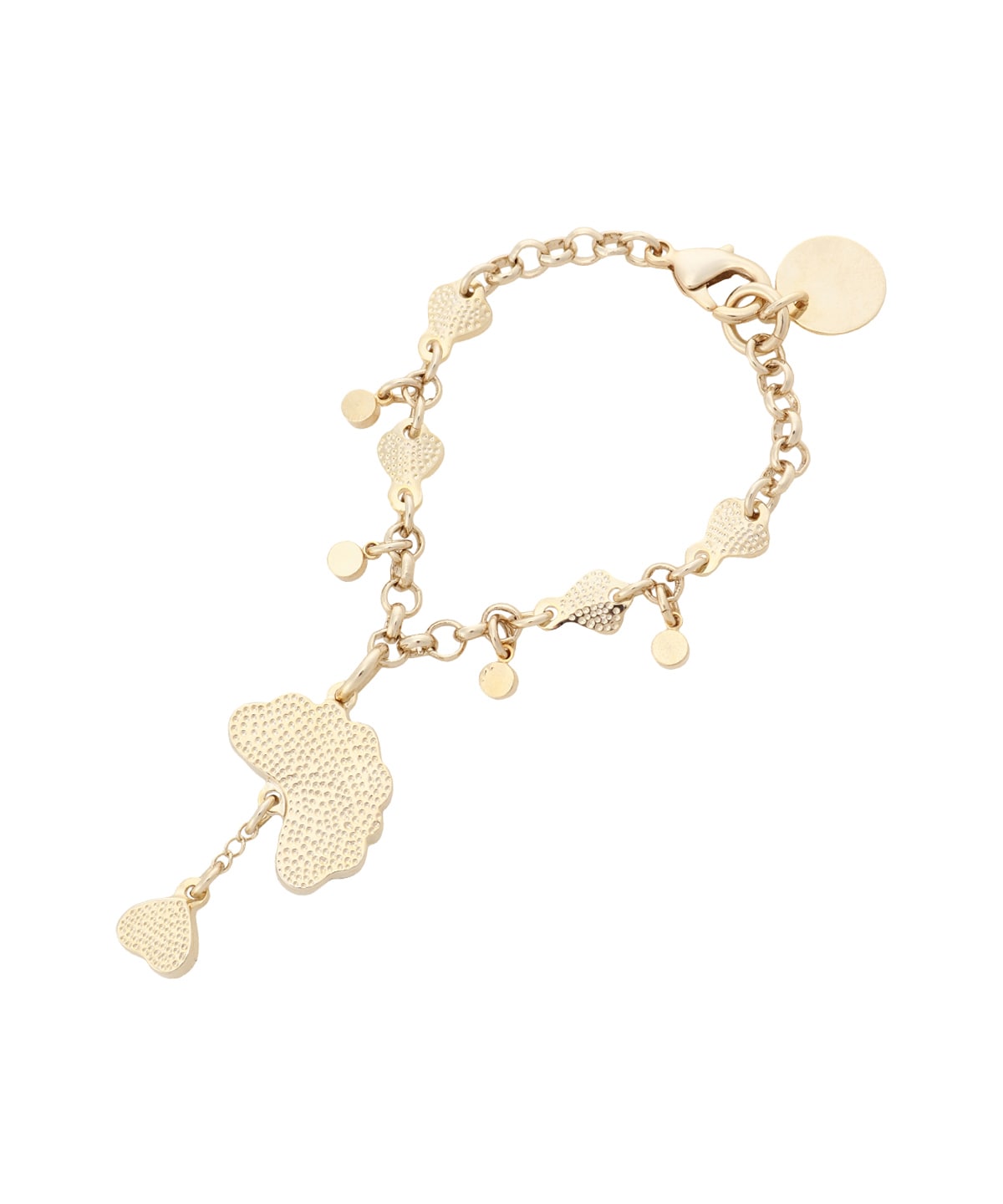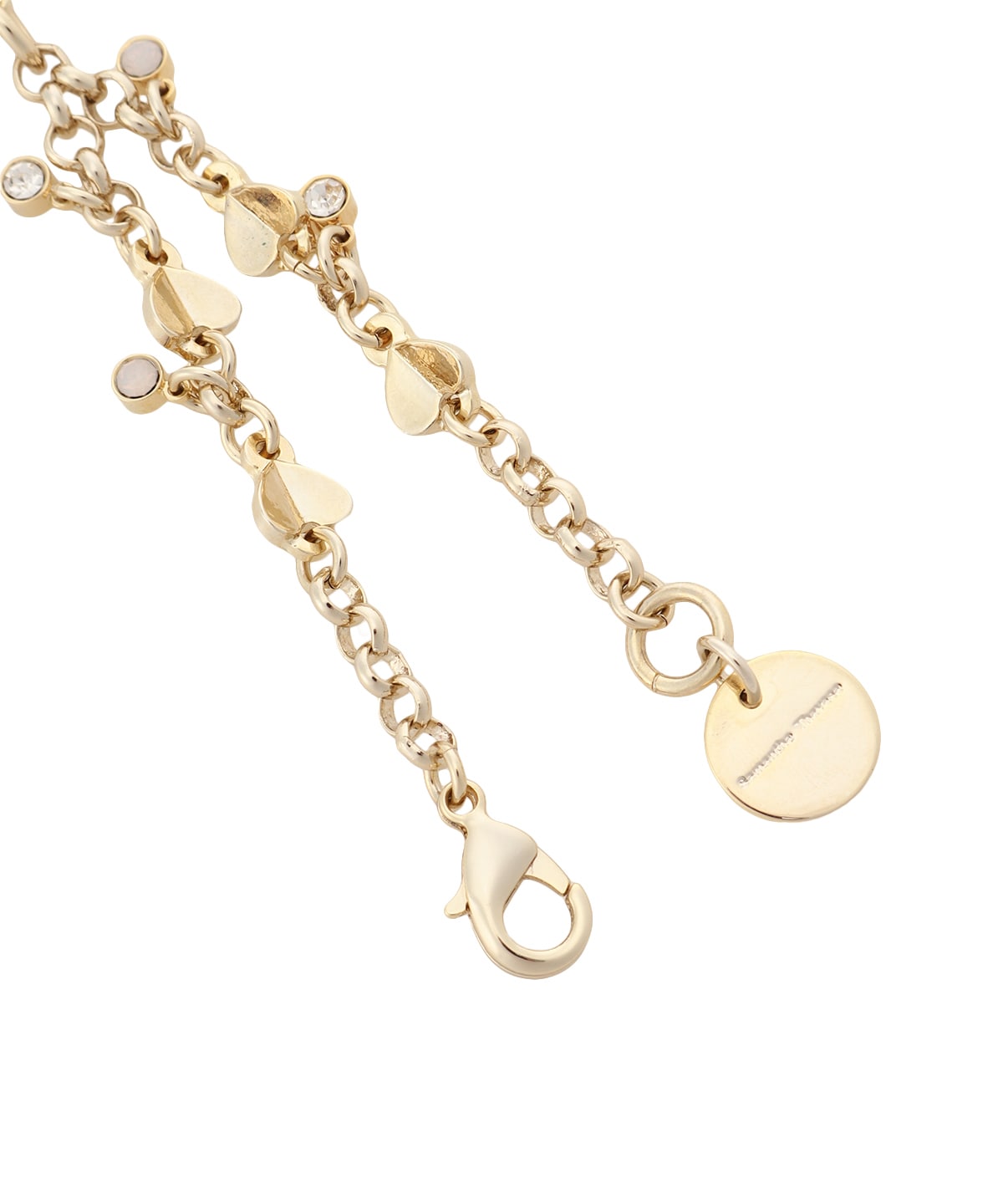 チェーン部分にも葉モチーフや小さめなビジューをあしらい、バッグなどにつけるだけで上品に演出できるアイテム。