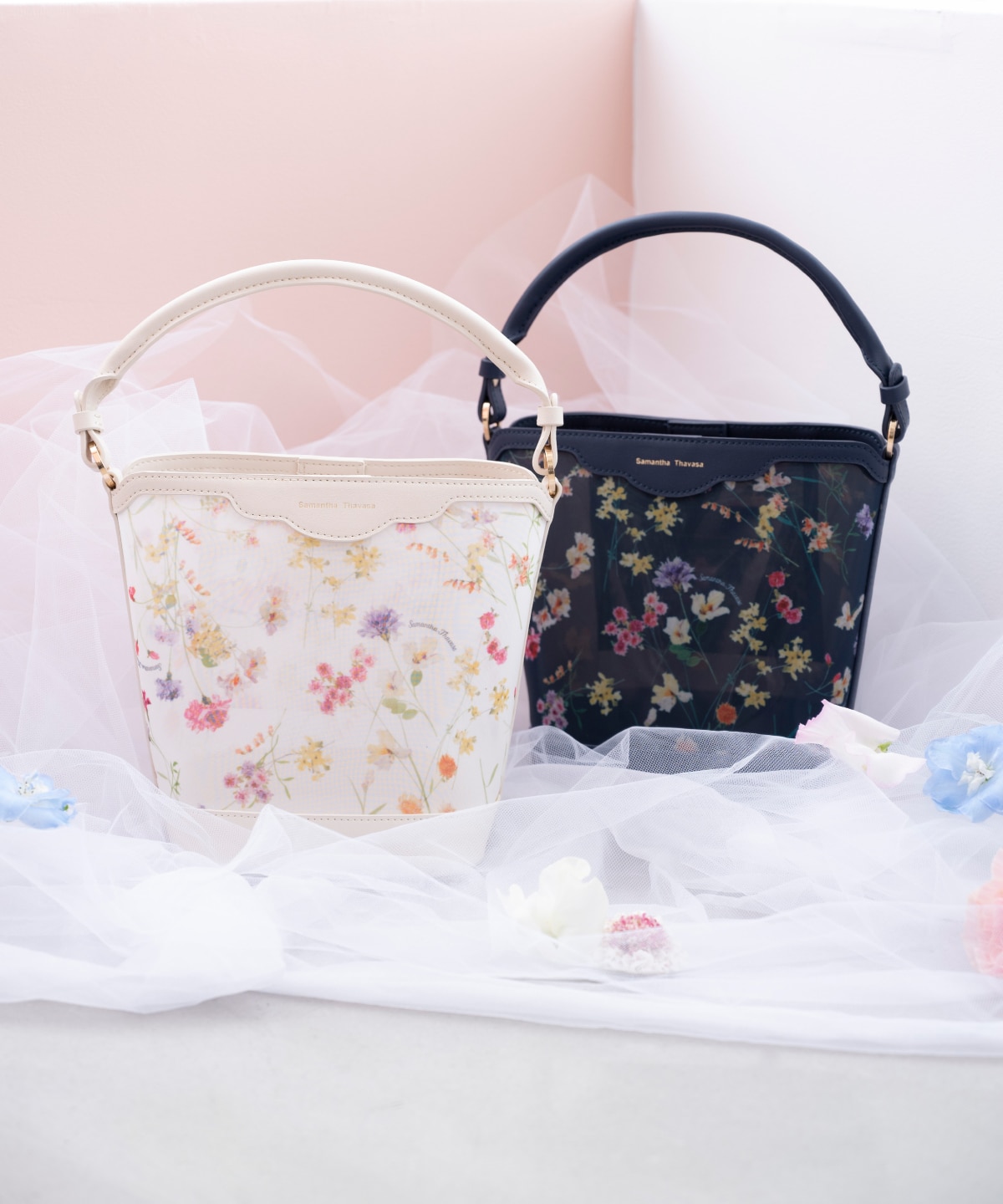 - > フラワーモチーフチュール ワンハンドルバッグ