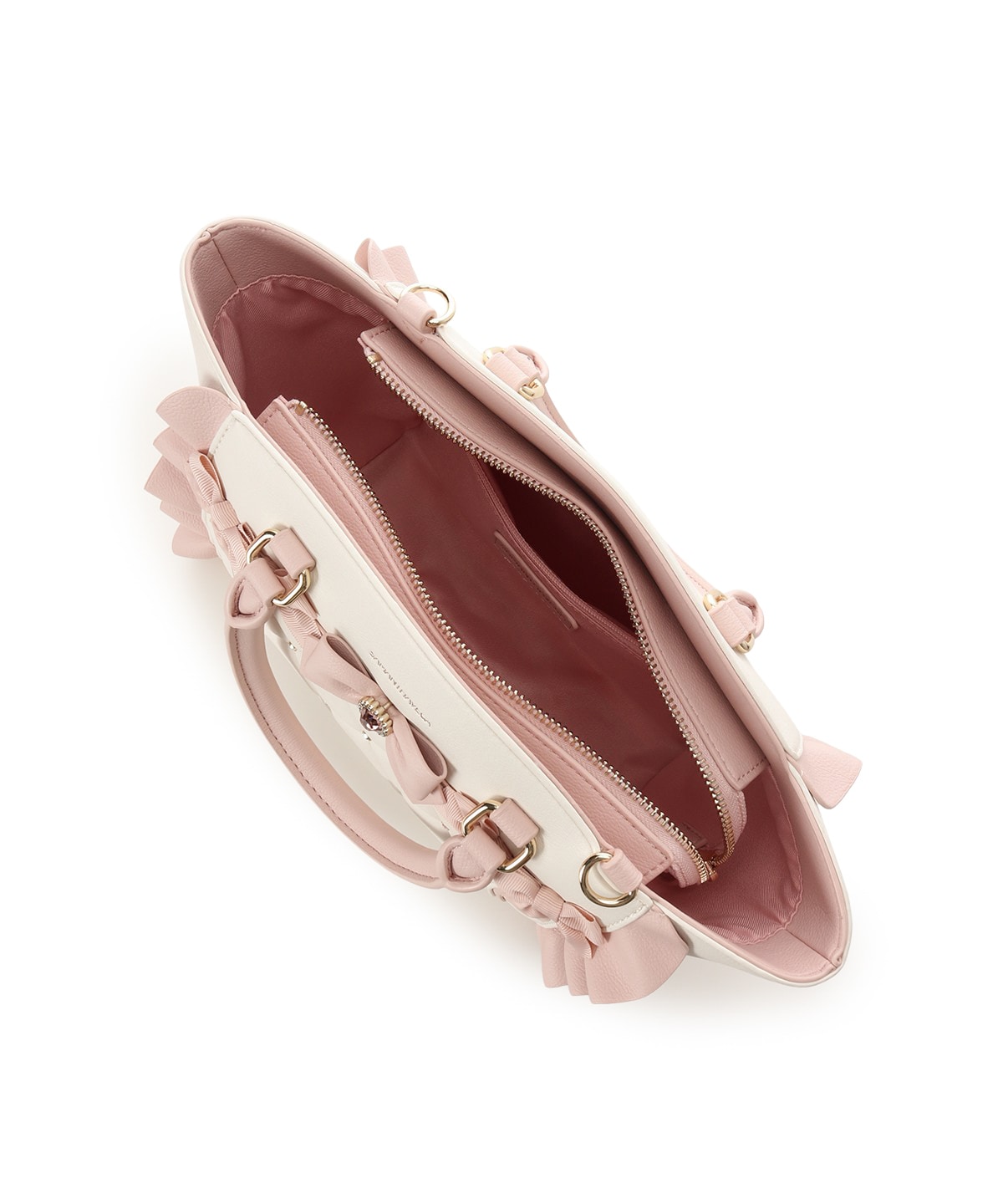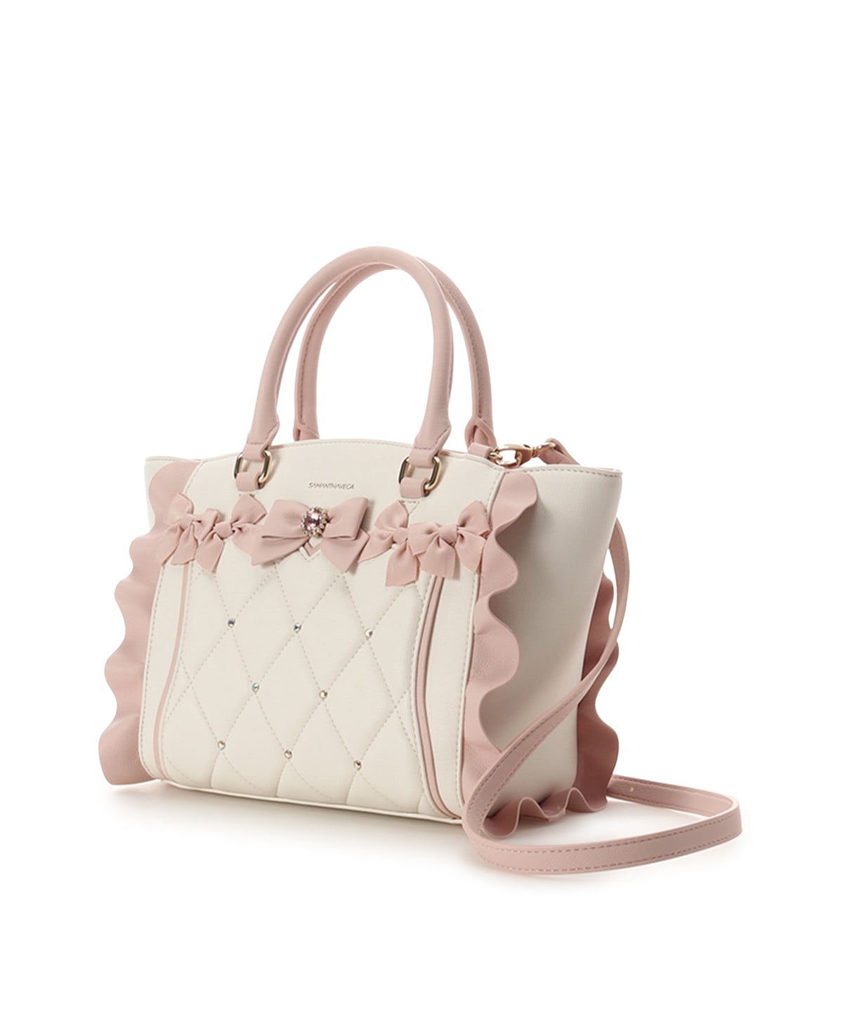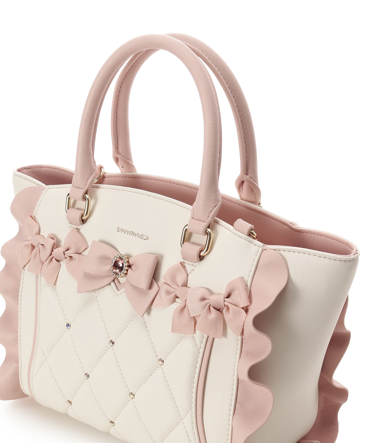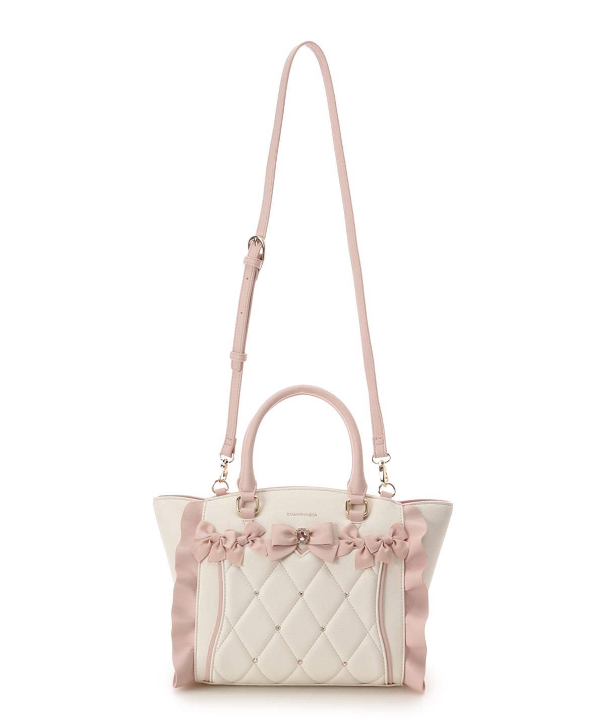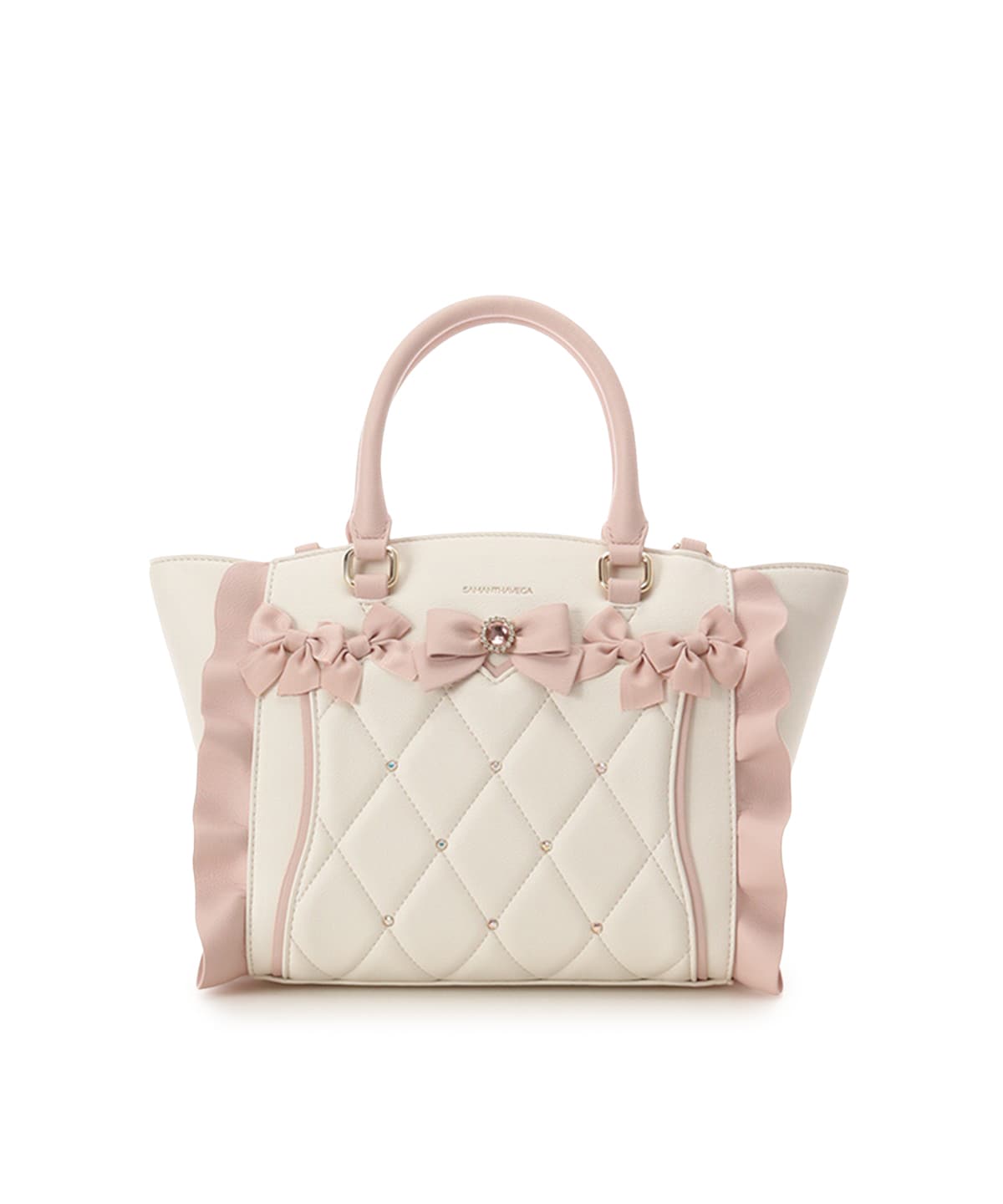 ・フロントの立体的なビジューリボンと、差材違いのリボンのMIXのリボン使いでより甘いフェイスになりました。