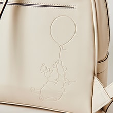 バッグ裏面には風船につかまるプーさんのアートを型押しでデザイン。