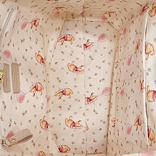 セットのパスケースにはのんびり寝転がって、チョウチョを眺めるプーさんのアートを♡ パスケース専用ポケットも完備。