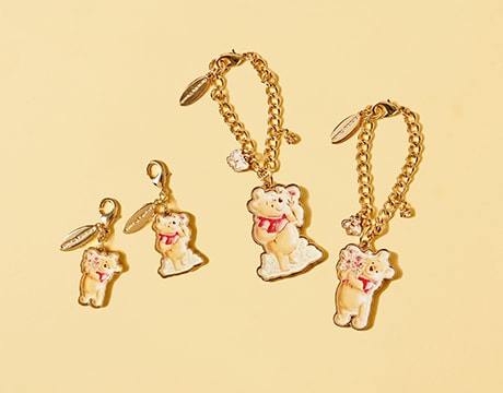 ポイントのロックチャームには、花束を抱えたプーさんが嬉しそうに微笑んでいます♡