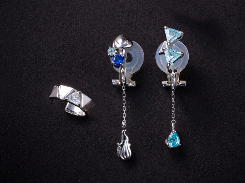 イヤーカフは茨が纏うようなデザインにし、ブラックロジウムコーティングがさらに寮の世界観をイメージさせます。