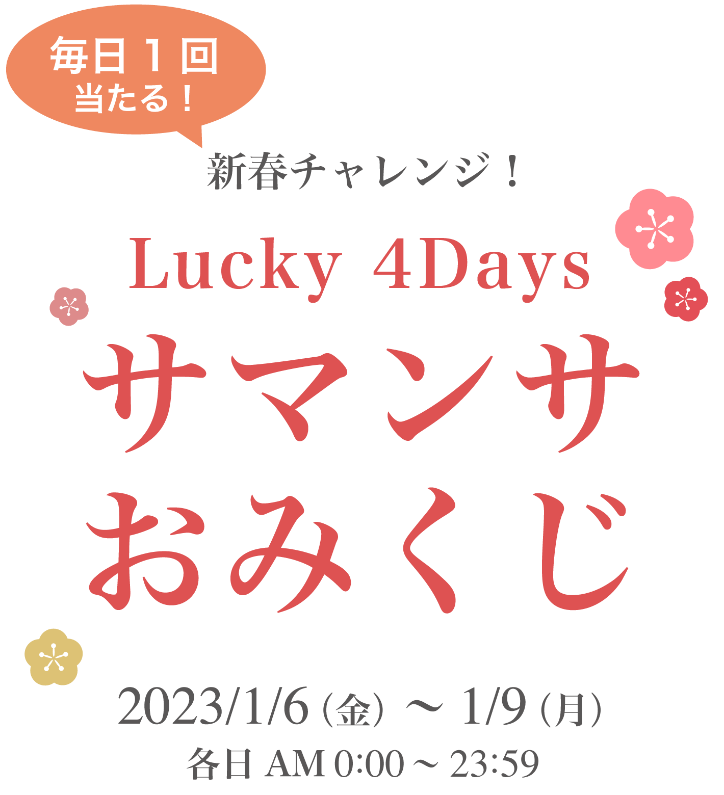 - ・『Lucky 4days サマンサおみくじ』への参加、クーポン利用には会員登録およびログインが必要です。