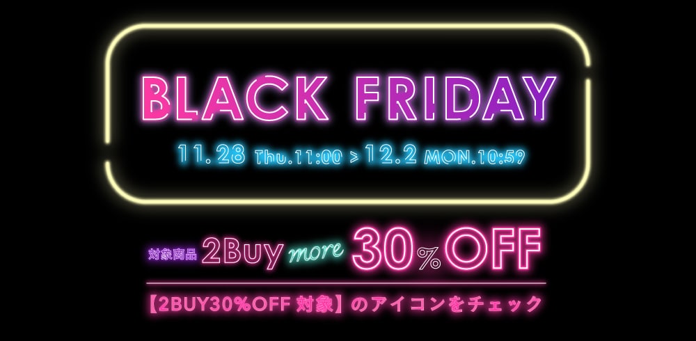 「2Buy30%OFF対象」と記載がある対象商品を2点以上お買い上げでキャンペーンが適用されます。