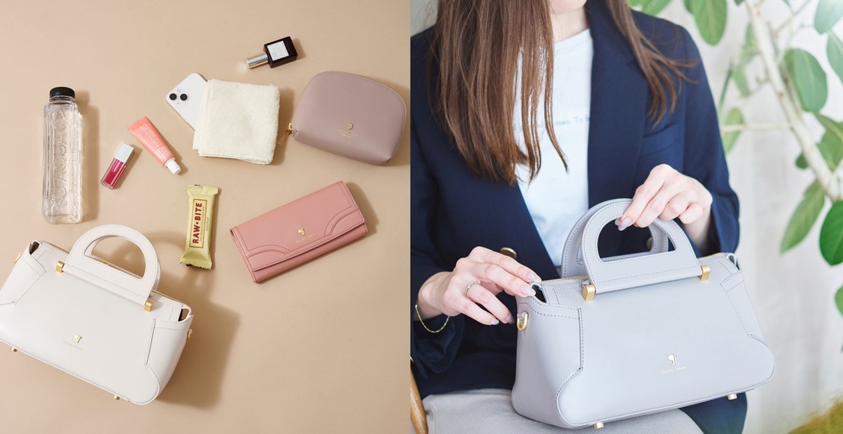 Boston Bag [small]:¥41,800(税込)/ [large]:¥44,000(税込)/ Hand Bag:¥46,200(税込) Color:black / off-white / pink‐beige / greige / green |