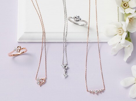 ハートシェイプのストーンが煌めくジュエリー。 |